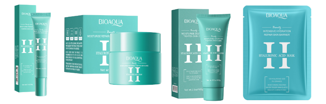 La marca ofrece la Crema Contorno de ojos con Acido Hialurónico Bioaqua, que promete una hidratación intensa para el área delicada alrededor de los ojos. Se promociona para ayudar a reducir líneas finas y la apariencia de ojeras, dejando la piel más firme y radiante.